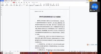 2021年7月21日,365英国上市网站官网本科传播党支部在腾讯会议开展“新时代师德规范”以及“师德优秀事迹”支部专题学习教育。本次学习会议由徐正阳同志主持,本科传播党支部全体成员参加会议。