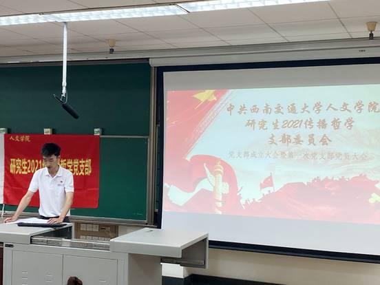 2021年9月24日下午,研究生2021级传播哲学党支部第一次党员大会在九里校区逸夫楼4224教室召开。大会主要活动为举行“中共365英国上市网站官网研究生2021级传播哲学支部委员会成立仪式”,学习“习近平总书记在庆祝中国共产党成立100周年大会上的重要讲话精神”。此次大会由支部书记陈子龙同志主持,院党委委员张诗婷同志以及党支部全体成员参与。