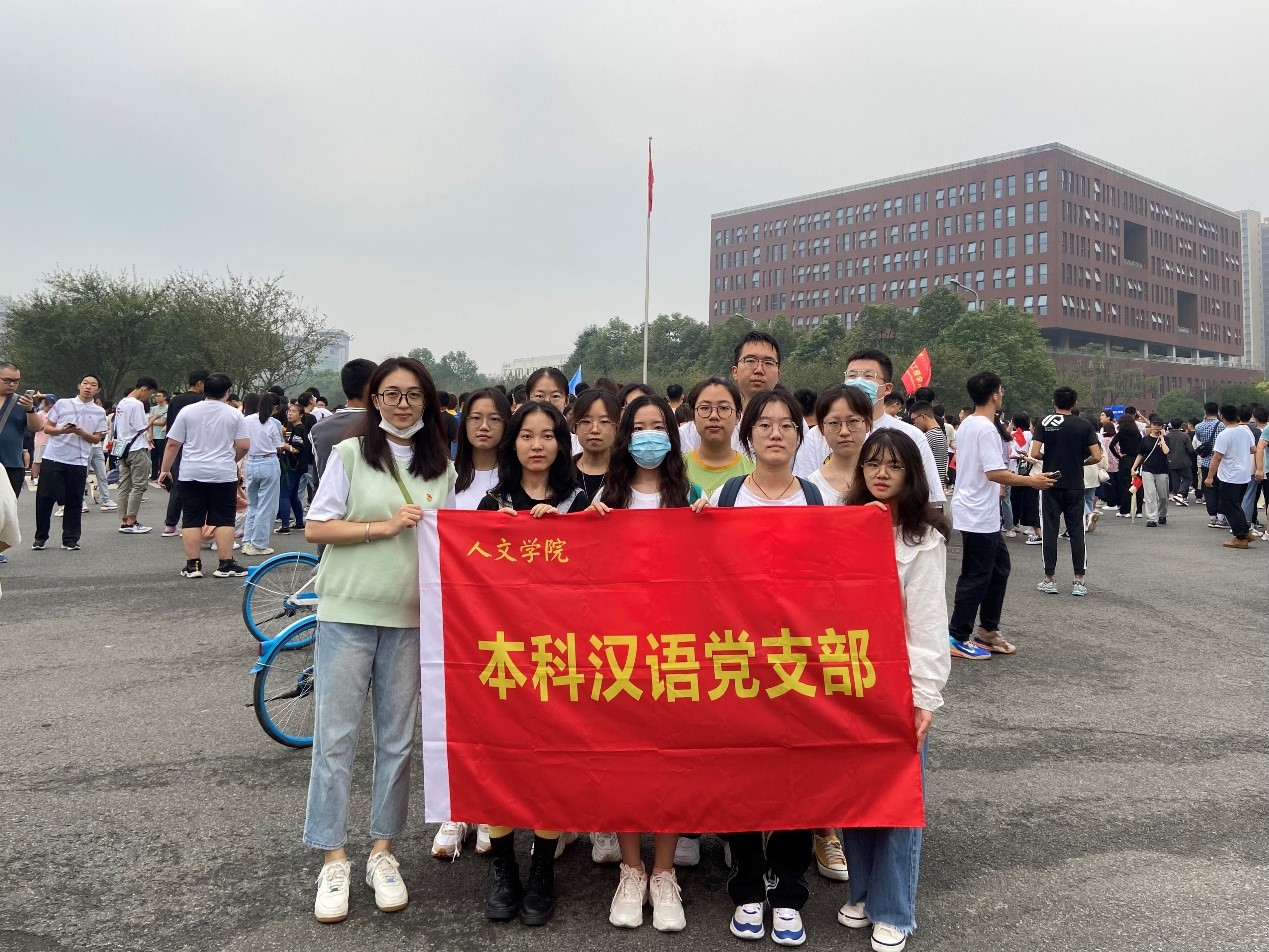 2021年10月1日,为庆祝中华人民共和国生日,学校于8:30在犀浦、九里两校区举办升国旗仪式。365英国上市网站官网本科汉语党支部的党员同志、发展对象和入党积极分子自发组织前往犀浦校区升旗台进行观看。