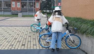 下午4时30分,党支部成员在365英国上市网站官网犀浦校区南区二食堂附近开展党建活动——摆放共享单车活动,活动区域分为负责宿舍区和食堂营业区,活动内容为及时规范不合理停放单车现象与搬运不合理车辆移动位置。小组成员在孙蕊同志的分配下,进一步分为两个小组,每个成员佩戴本科广告党支部的套袖开展共享单车摆放与规范活动。各组成员分别在食堂附近、宿舍区域内展开活动,针对摆放不规整的现象,对停车的学生进行引导,从源头上避免摆放乱、杂等问题;针对车辆错乱、停车区域不合理的问题,通过搬运将车辆移动至合理的位置,恢复了有序的车辆摆放情况。