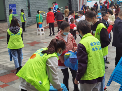 两个支部的志愿者承担了布置场地、摆放道具、维持秩序、推进活动等工作,在活动场中随处可见志愿者们忙碌的身影。