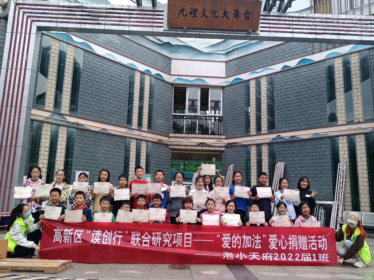 在正式活动开始前,高新区“读创行”联合研究项目组和泡桐树小学6.1班的全体师生共同创作了《麒麟笔》《熊乐乐与蜗牛先生》《外星人爸爸》《邋遢大王成长记》等系列作品,作品以义卖的形式将所筹善款捐赠到“蜜之初”社会工作服务中心,中心利用这笔善款购买了中心团体课程的教辅具以及开展本次爱心融合活动。